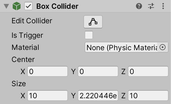 직육면체의 기본 Collider이며, 상자 형태의 GameObject에 유용하다.