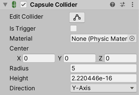 Direction: 캡슐의 local 좌표상의 길이 방향을 설정