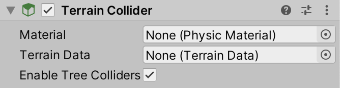 Enable Tree Colliders: 선택시 Tree Collider가 작동함.